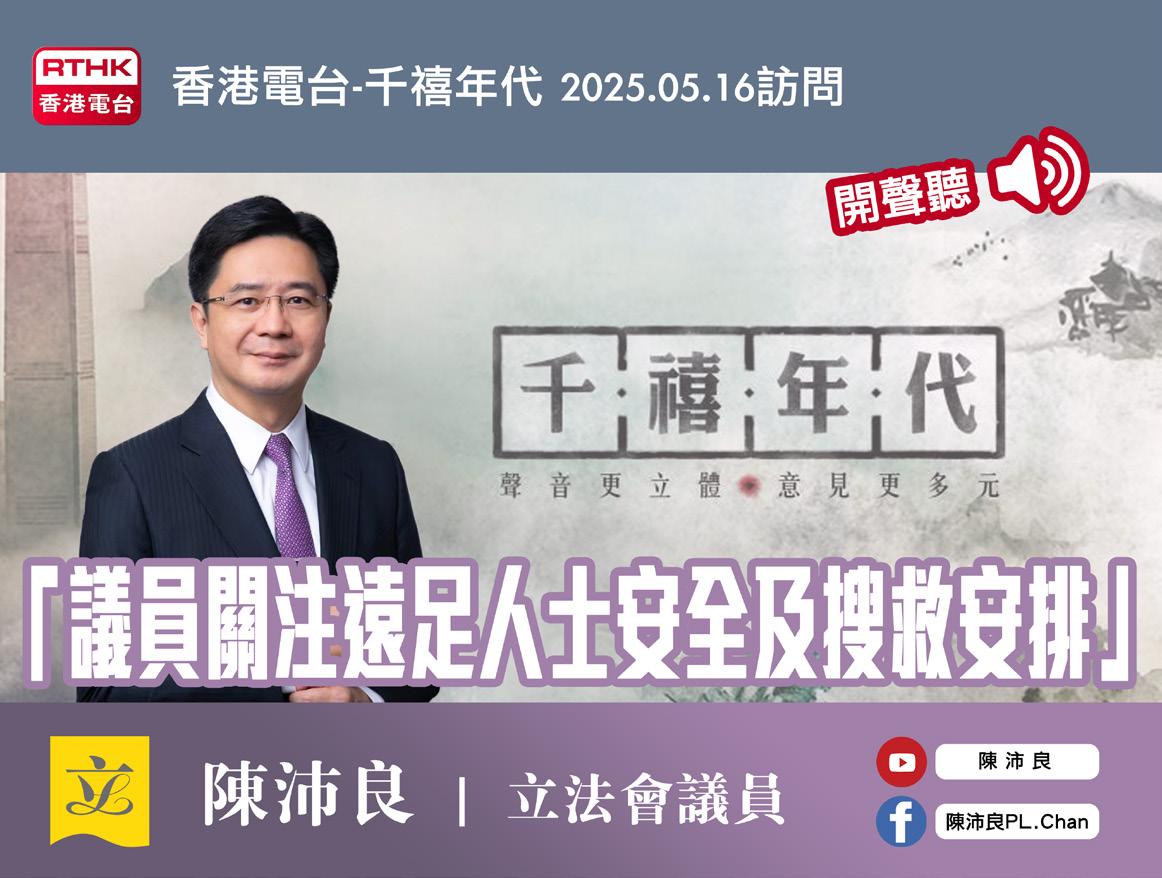 就「遠足人士的安全」接受香港電台 《千禧年代》訪問,提出當局值得考 慮針對屢勸不改、不顧警告而發生意 外並尋求救援的遠足人士收取救援費 用,有必要確保公帑及資源合理使 用,不應由納稅人買單。
