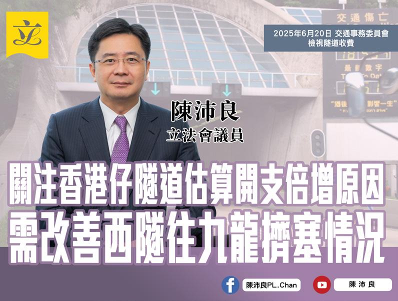 政府檢視隧道收費,我關注香港仔 隧道估算開支倍增原因,及如何改 善西隧往九龍方向的擠塞情況。