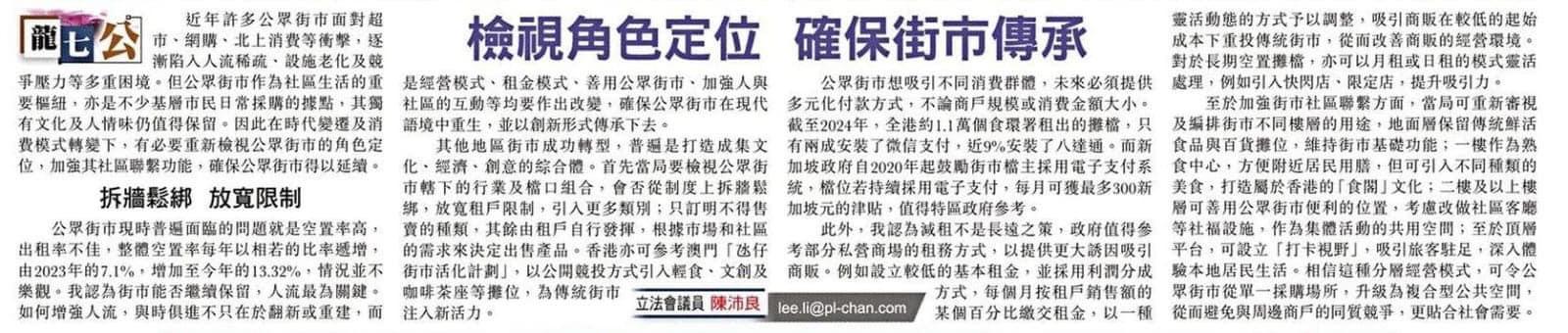 希望新一份《施政報告》在提振消費、改善營 商環境方面有着墨,建議政府可設立高層次的 專組推動有關工作。