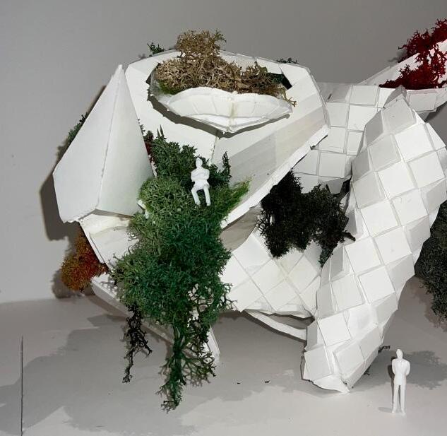 Origami in architecture shows how folded geome try can inspire new spatial forms. The models above come from my previous design, where colour and folding worked together to generate architectural ideas.