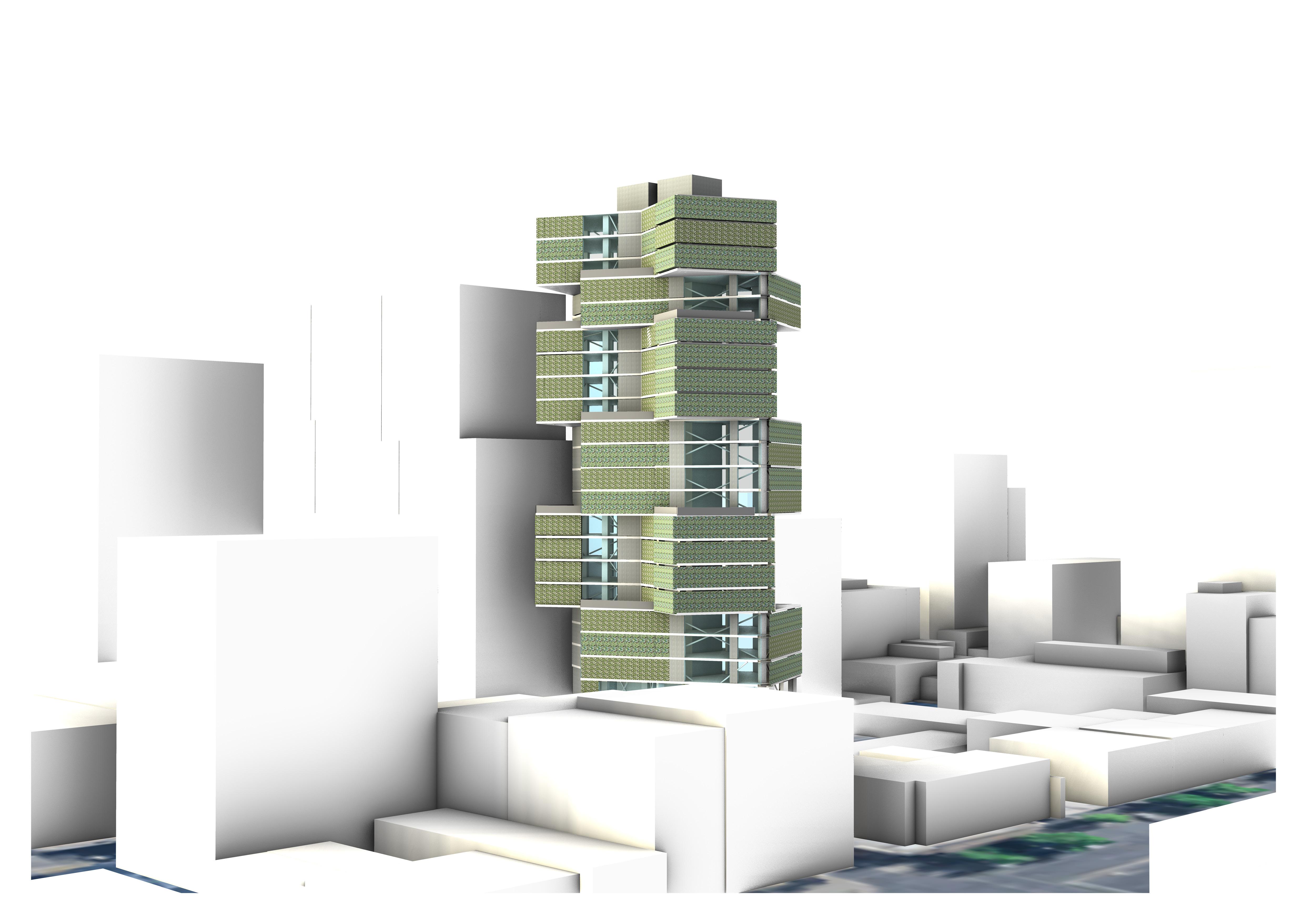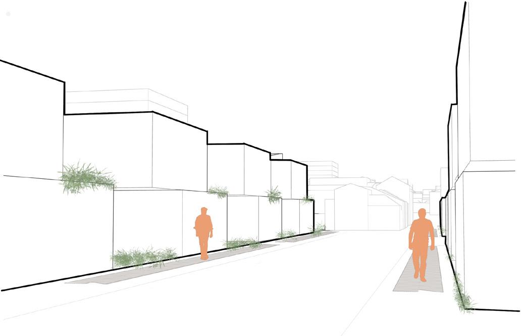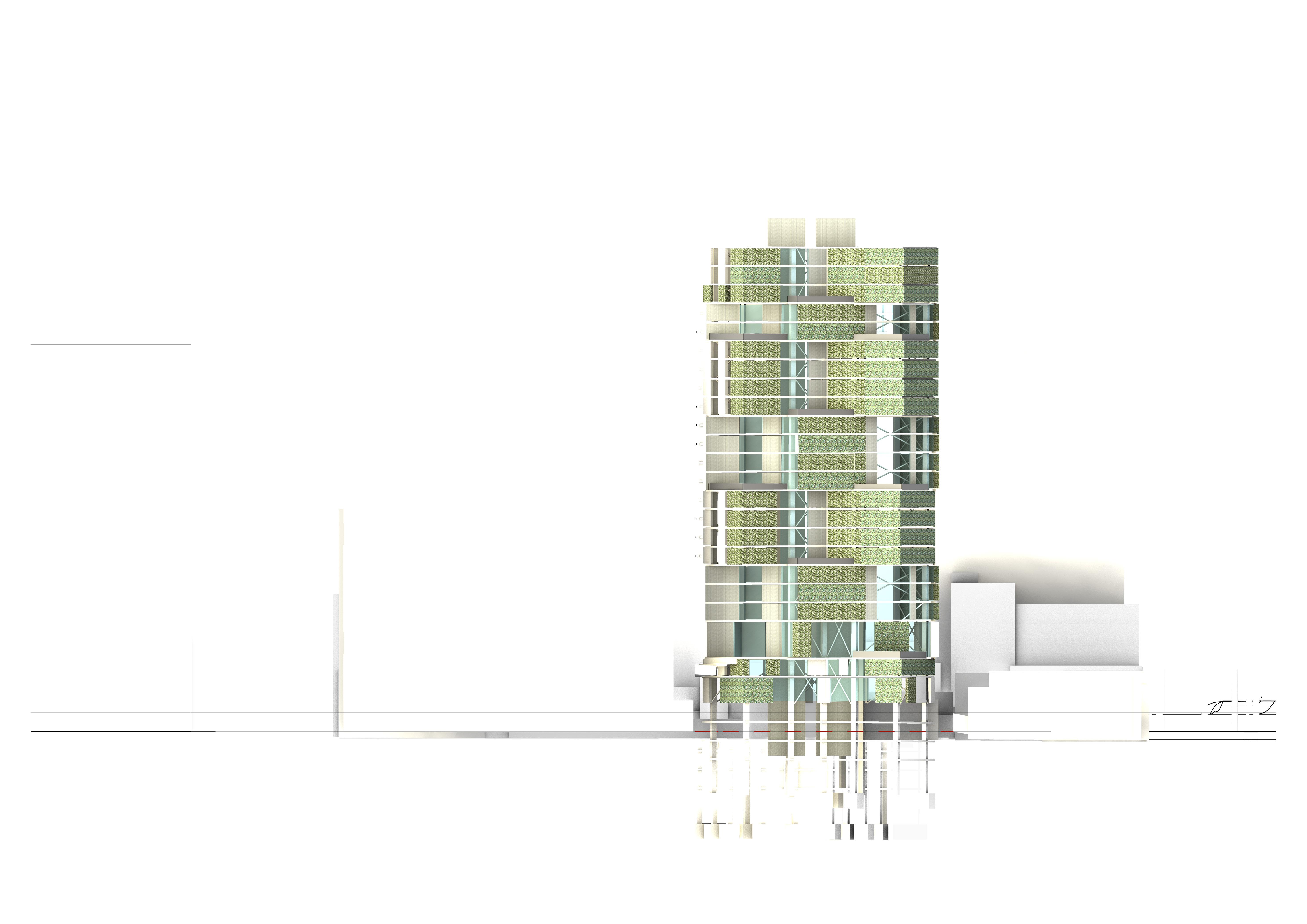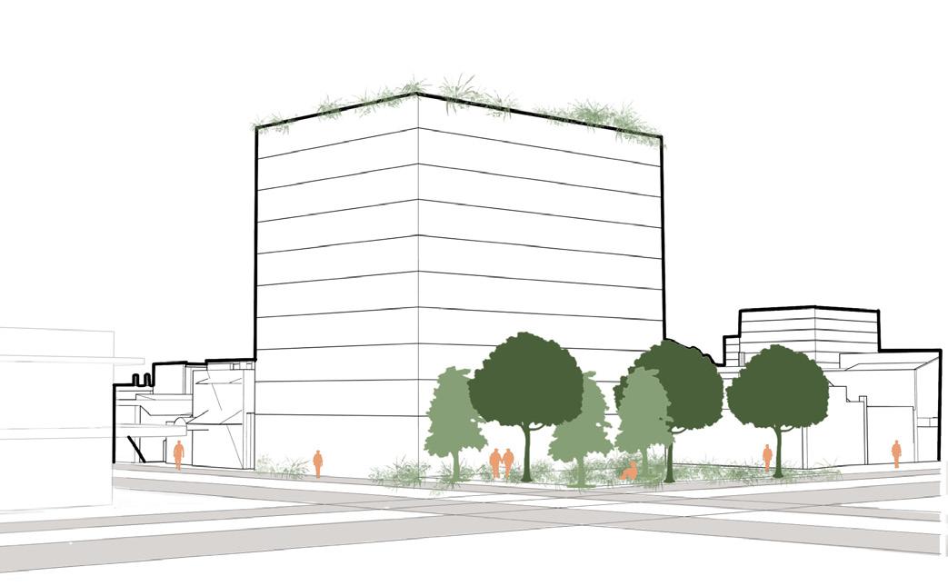 A ten-storey mixed-use building, complemented by a small open green space, can create a positive first impression for users and serve as an attractive element that draws people into the site