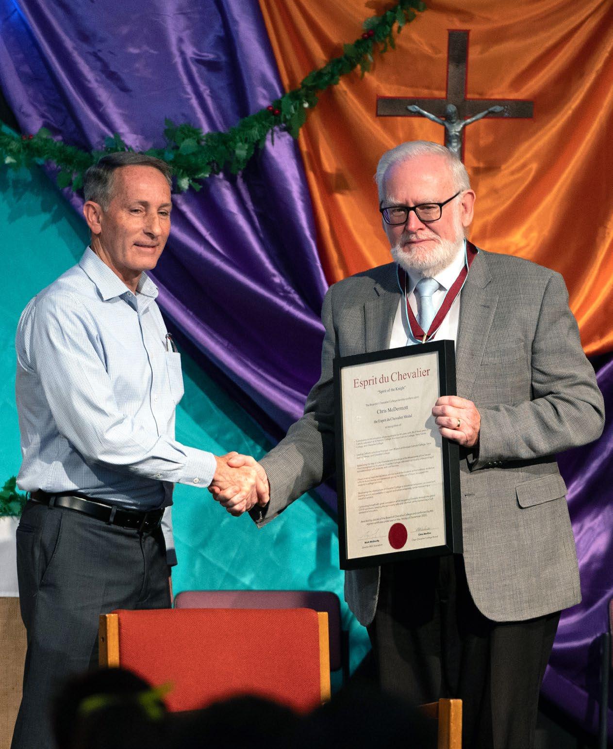 The Board of Chevalier College hereby confers upon Chris McDermott the Esprit du Chevalier Medal in recognition of