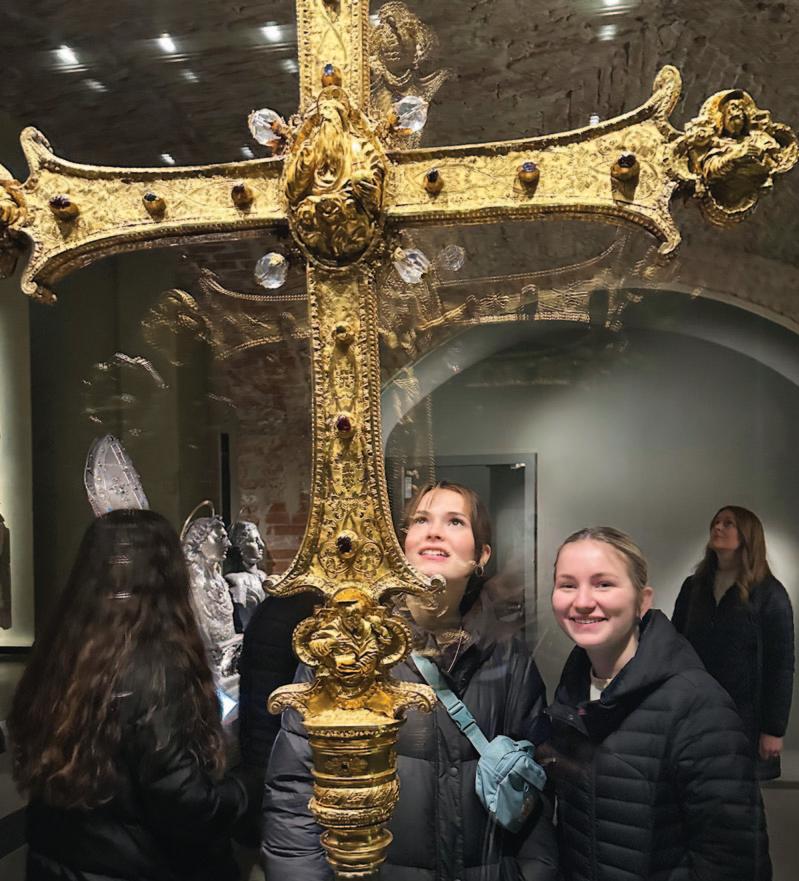 Prof. Giulia Magnano, a science teacher at Leone, was a gracious host with a robust itinerary for the students and accompanied the group every step of the way. And there were many steps – the group walked on average eight miles each day – visiting the most important cultural sites in Milan, including a tour of the terraces of the flamboyant Italian gothic Duomo, the Basilica of Saint Ambrose (the patron saint of Milan and beekeepers), Santa Maria della Grazie, the Brera museum (the original home to the Jesuits in the city until their suppression in 1773), and San Fedele church, the current home to Milanese Jesuits, near the famous opera house La Scala. Fr. Guido Rota, S.J. gave the group a tour of San Fedele and connected the church’s architecture to Ignatian Spirituality.
