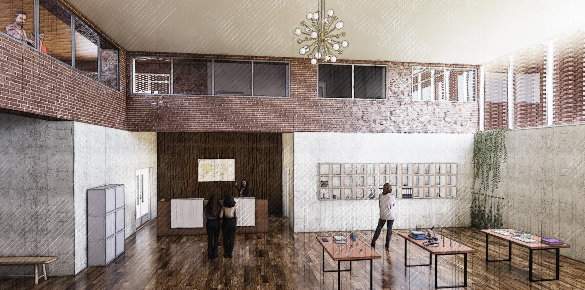 In the first half of the semester, we focused on the specifics of construction by studying and drawing technical vignettes of the foundation, envelope/wall, and roofing systems. From here we applied our knowledge to create an extension on the Ag Museum located on campus of SDSU. Programmatic details of this extension include an auditorium for 120 people w/ stage (3600sf), gift shop and cafe for 30 people (4400sf), public spaces (1500sf) and an entryway (open sf).