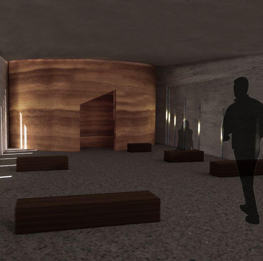 In unit 1, I studied the sacred and the profane and used a program called MidJourney Artificial Intelligence to reflect my research. I first started with the idea of profane architecture being inhabited by sacred acts. Comparing the similarities of the architecture in k-12 schools vs prisons, one can see the priority set on form over function. In unit II, we studied multiple buildings from across the world that were designed as meditative spaces. Light attributes such as the source, geometry, direction, and light qualities were all considered in our research along with IES (Illuminating Engineering Society) standards: Task Lighting, Architectural Lighting, Accent Lighting, and Celebration lighting. For the final Unit, we were tasked with finding a spot in Brookings South Dakota to build a 24-hour spiritual/meditative space. Our primary guideline that we applied throughout our work was contrast and we used this to influence our sub-guidelines (water, verticality, light, geometry, compression, and expansion). We created a rammed earth and concrete structure with 4 main lighting strategies; a triangular entry way that gives the user the feeling of compression, vertical slits that compress and grow taller as you circulate deeper, the horizontal slit at the top of the rammed earth space, and the large, framed space window. Different outdoor spaces allow the user a feeling of privacy if desired.