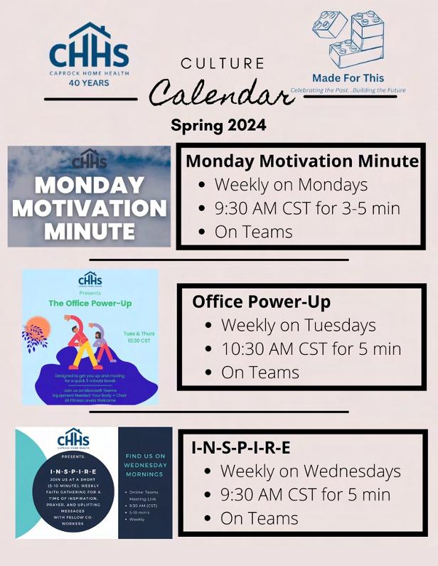 Happy Work-a-versary to our teammates who have celebrated another year with CHHS in the 1st Quarter!