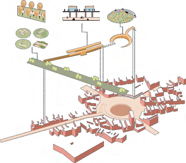 The circle center is also planned as an urban park with the largest amount of greenery, establishing an urban cold island providing space for people to rest and play. The original land bridge will also become an extension of the urban green corridor.