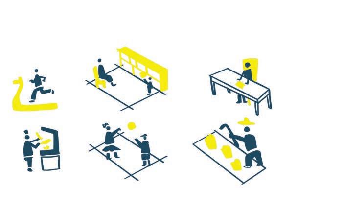 In accordance with the government's urban development plan, a complex community activity center will be established in the base to provide a space for nearby residents to conduct business, hold performances, and engage in reading. The main objective of setting up the community center is to o er adequate space for activities, particularly for the elderly who make up a signi cant proportion of the population, and to promote intergenerational education. With this in mind, the design of the community activity space will facilitate the sharing and enjoyment of activities by both the elderly and children. Furthermore, green belt space will be added to compensate for the lack of greenery in the area.