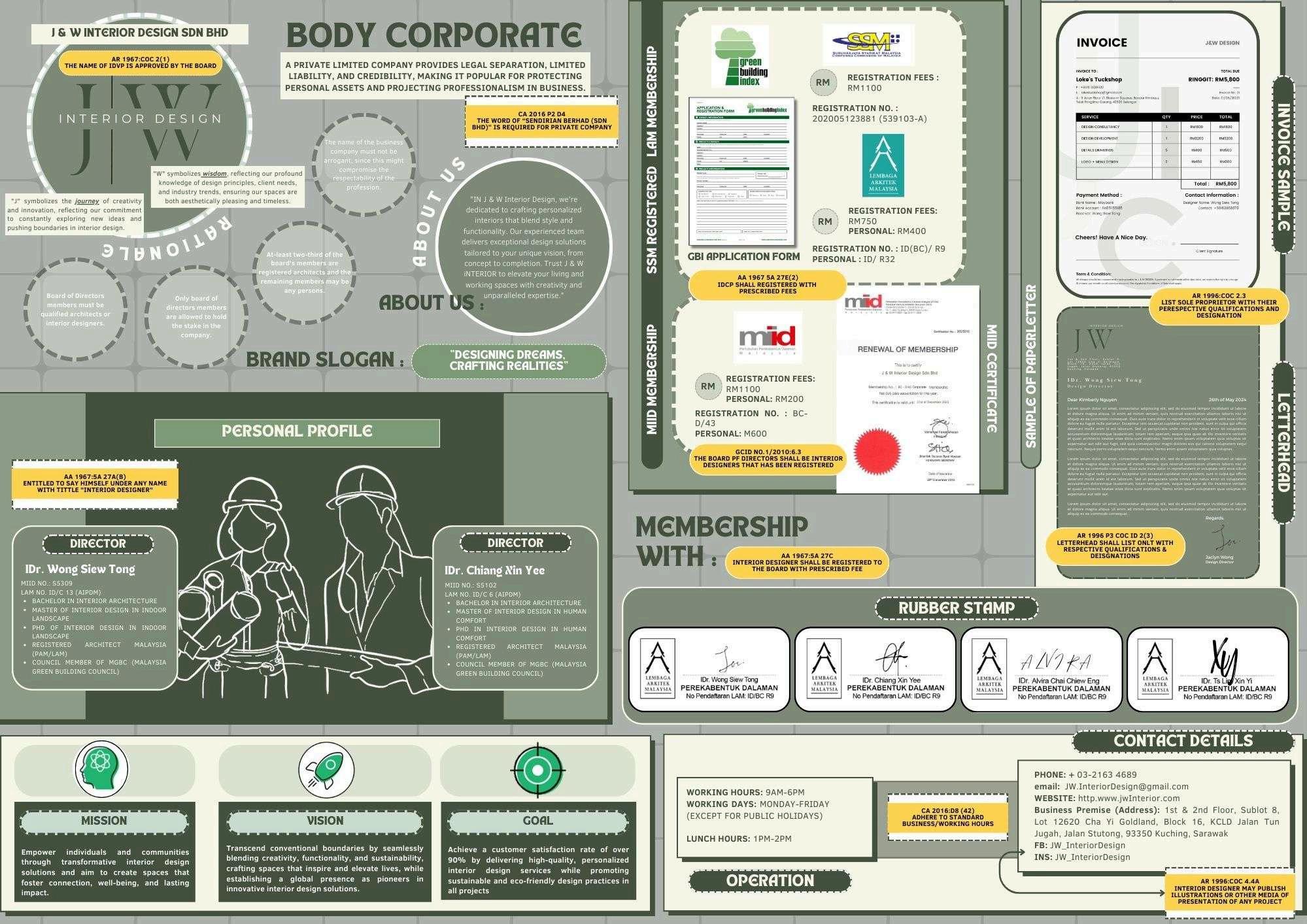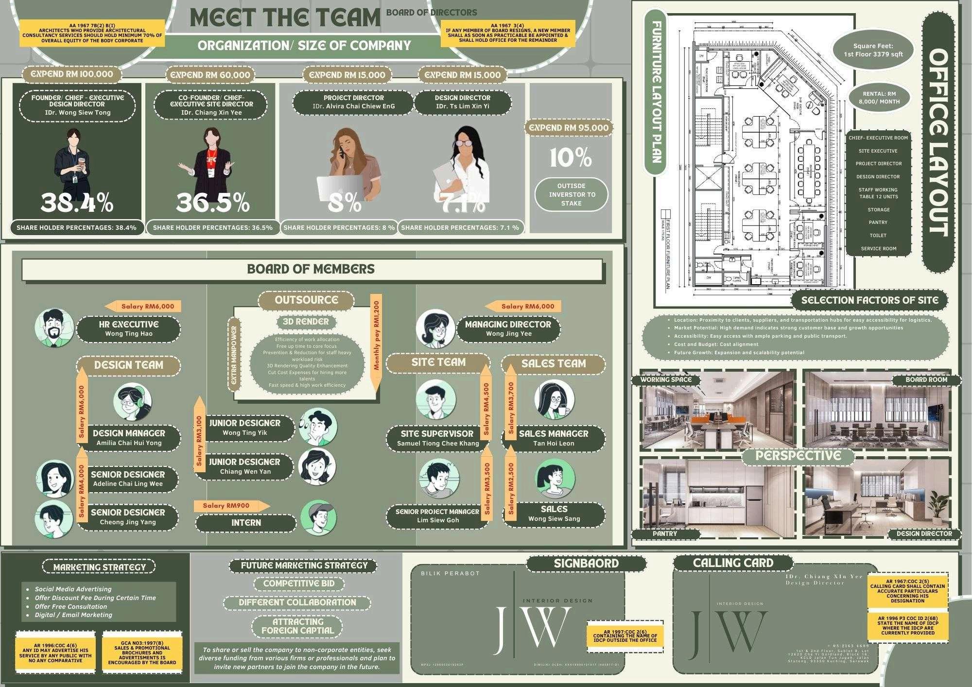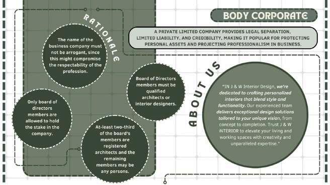 Throughout our exploration of "Future Practices (Formation of IDCP)," my groupmate and I embarked on the envisioning of J&W Interior Design Sdn. Bhd., an interior design consultancy practice grounded in body corporate structure and forward-thinking ideals.