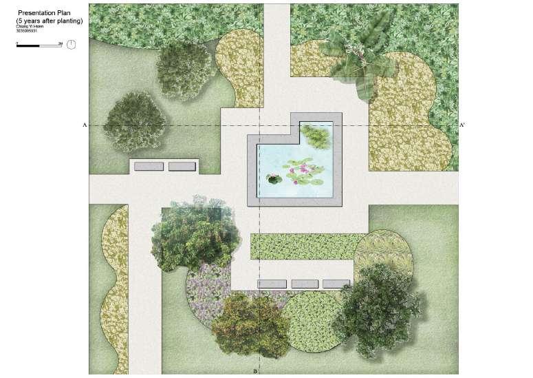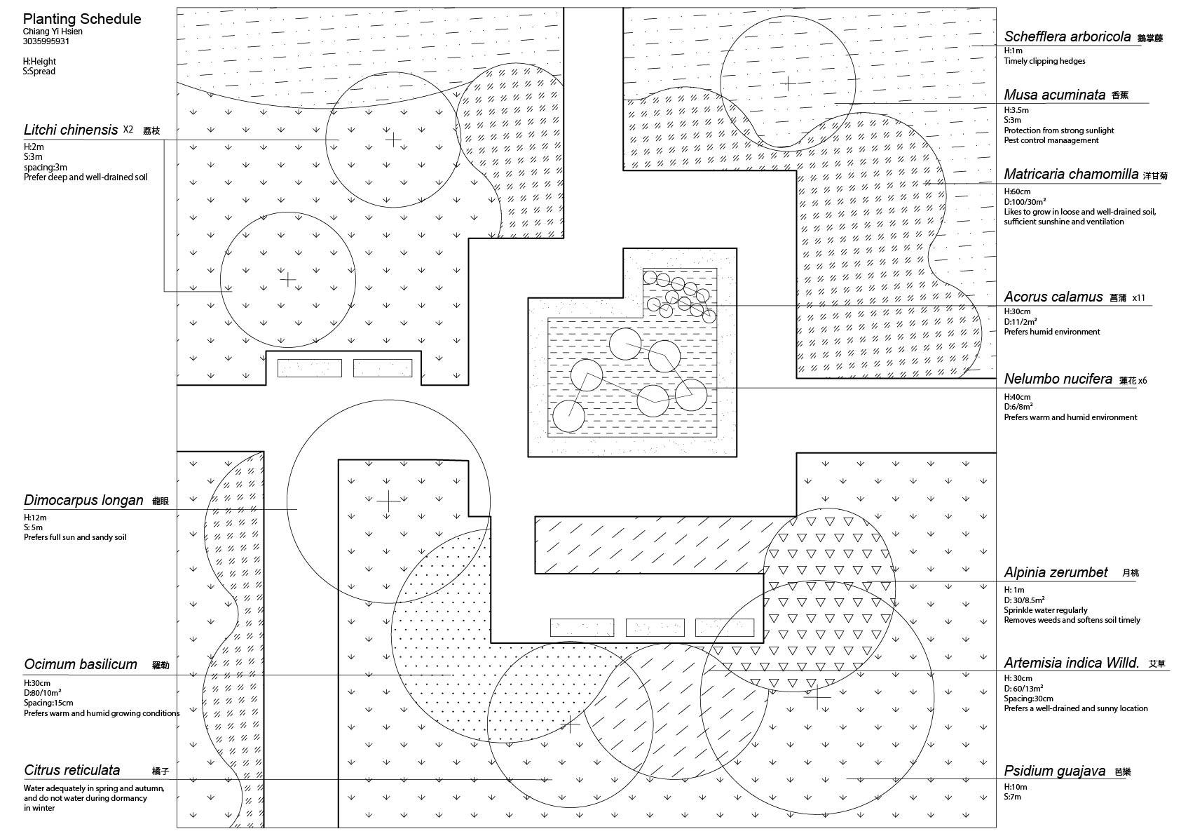 休憩林帶 香草區 A' A 機能分析圖 剖立面圖 設計說明 平面配置圖