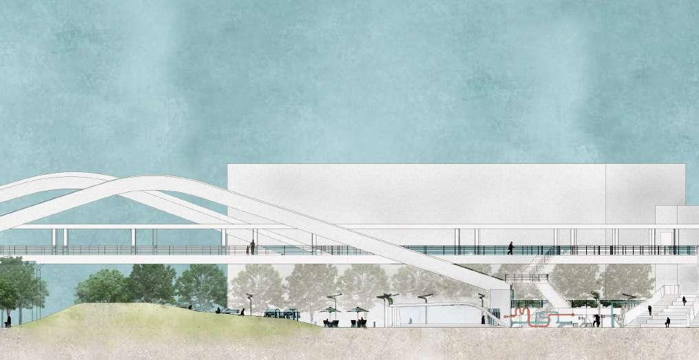 隨著交通發展、企業進駐與都市計畫的推展,現今的南港逐漸成為台北東區重 要據點;本設計需在綠廊計畫之下,於北流周邊打造東區門戶意象。
