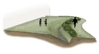印襯遠方山景,以連綿的山坡地創造活動 場所,提供躲藏、穿越、爬坡等行為