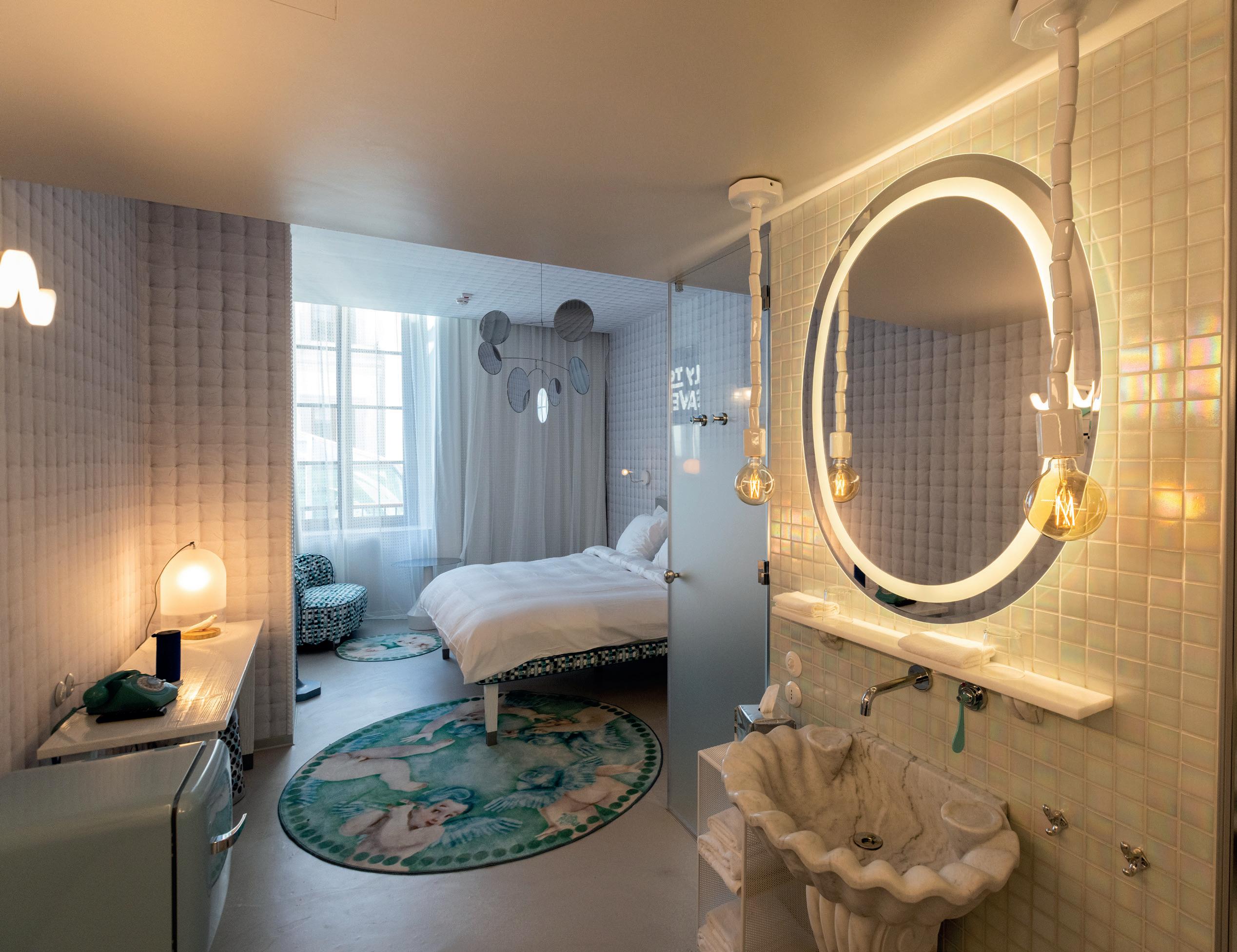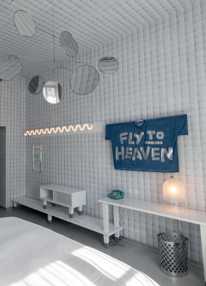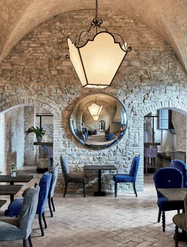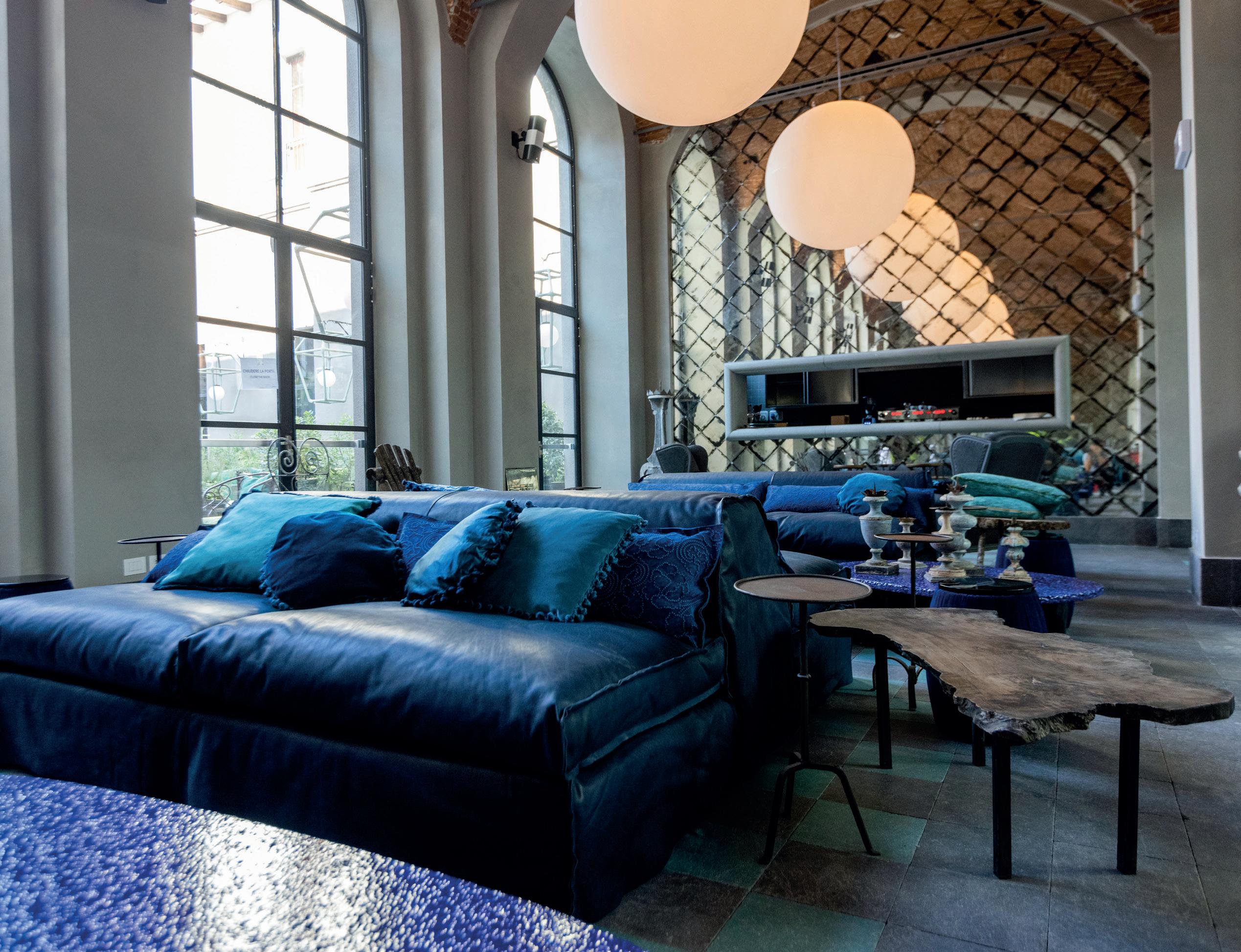 Il design degli interni è un progetto dello studio OTTO di Paola Navone che ha sviluppato Il concept dell’albergo con tema dantesco della Divi na Commedia. Infatti le stanze dell’hotel sono suddivise in stanze Paradiso e stanze Inferno. Anche con la luce si è cercato di ricreare l’atmosfera voluta creando ambienti luminosi ed ‘eterei’ per il paradiso..