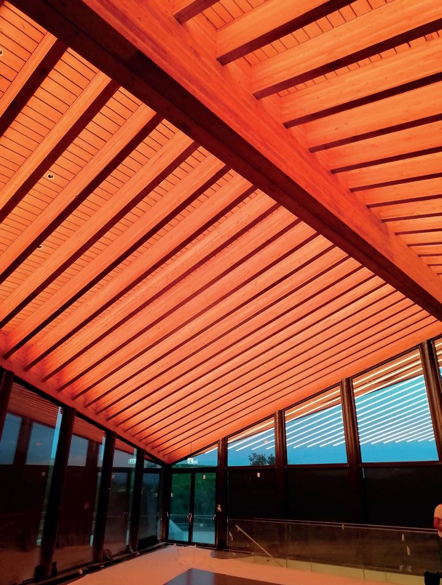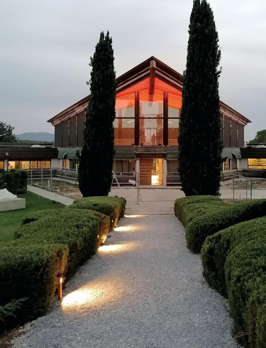 L’illuminazione della sala delle conferenze della cantina Ornellaia chiamata “Aquilone” per la particolare forma della sua copertura è stata studiata per enfatizzare la struttura lignea circondata da vetrate, con un sistema di illuminazione lineare con bianco dinamico che permette di adattare l’atmosfera di luce alle diverse funzioni della sala.