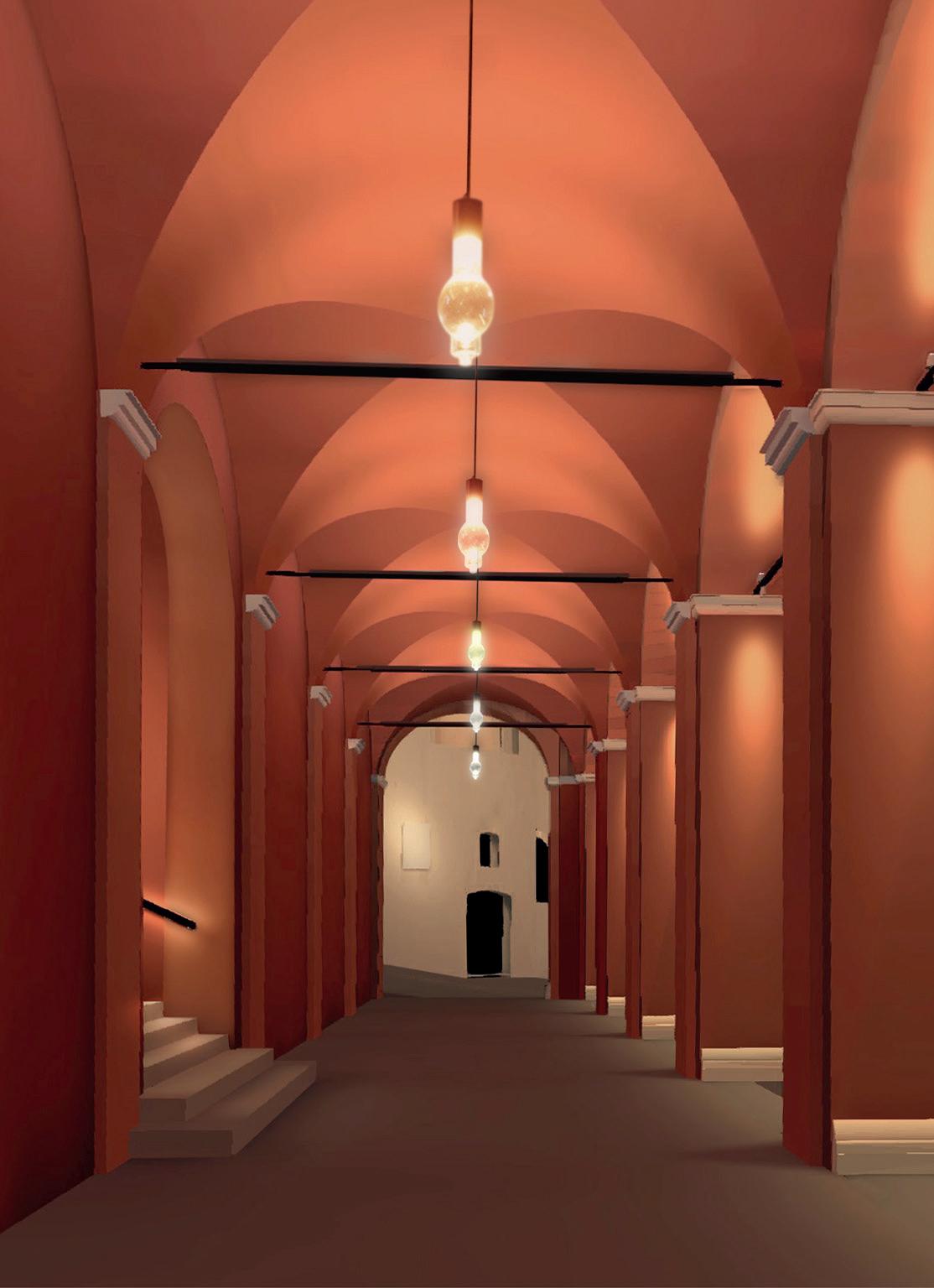 I fasci di luce particolarmente collimati colpi della scultura, ricercandone l’ombra. In questo modo si viene a creare un dialogo aperto tra mostra temporanea ed esposizione permanente, di confronto ed attrazione, che mette in pratica gli elementi essenziali di un buon progetto di luce: Tecnica e Poetica.