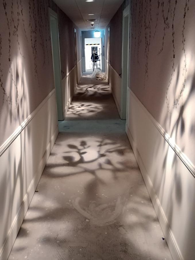 da incasso con proiettore orientabile e gobo integrato in collab. con Exenia srl corridoi Hotel Grotta Giusti, Monsummano Terme