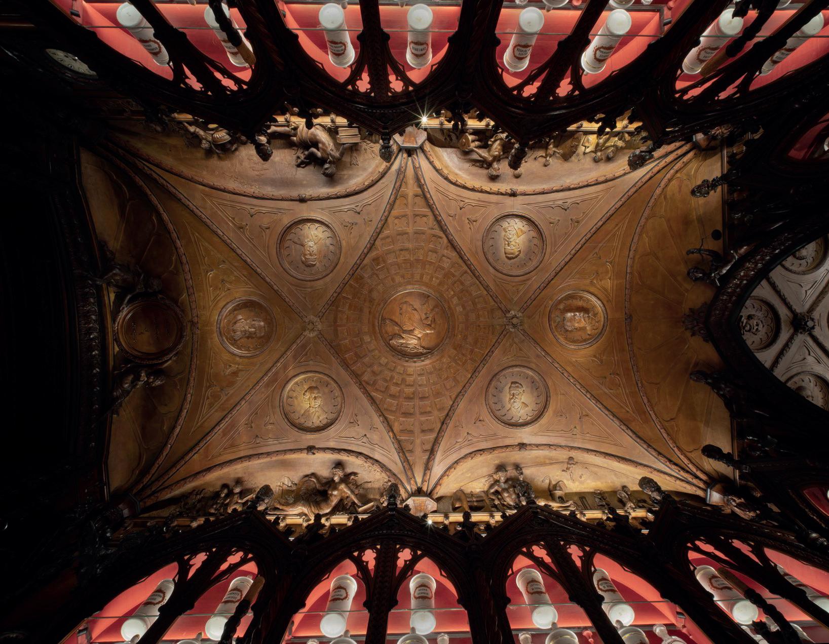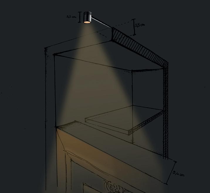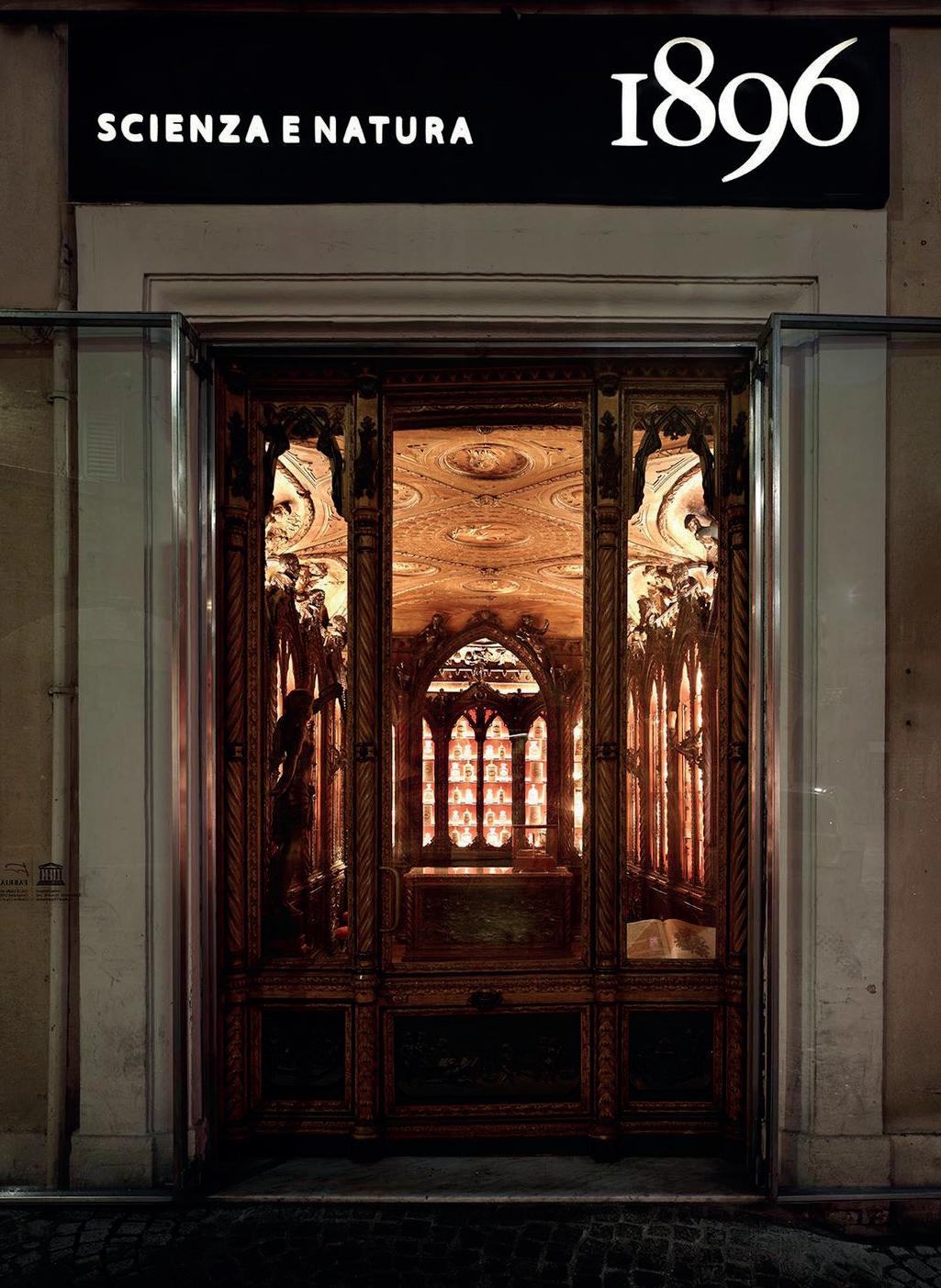 La nuova luce dell’antica farmacia Mazzolini-Giuseppucci, interamente decorata con intarsi in legno e rappresentazioni dei maggiori scienziati dell’epoca, esalta i preziosi intarsi e le vetrine con antichi vasi Ginori, con appa recchi miniaturizzati e nascosti, alternando luce indiretta per la volta a luce d’accento e puntuale per i dettagli.