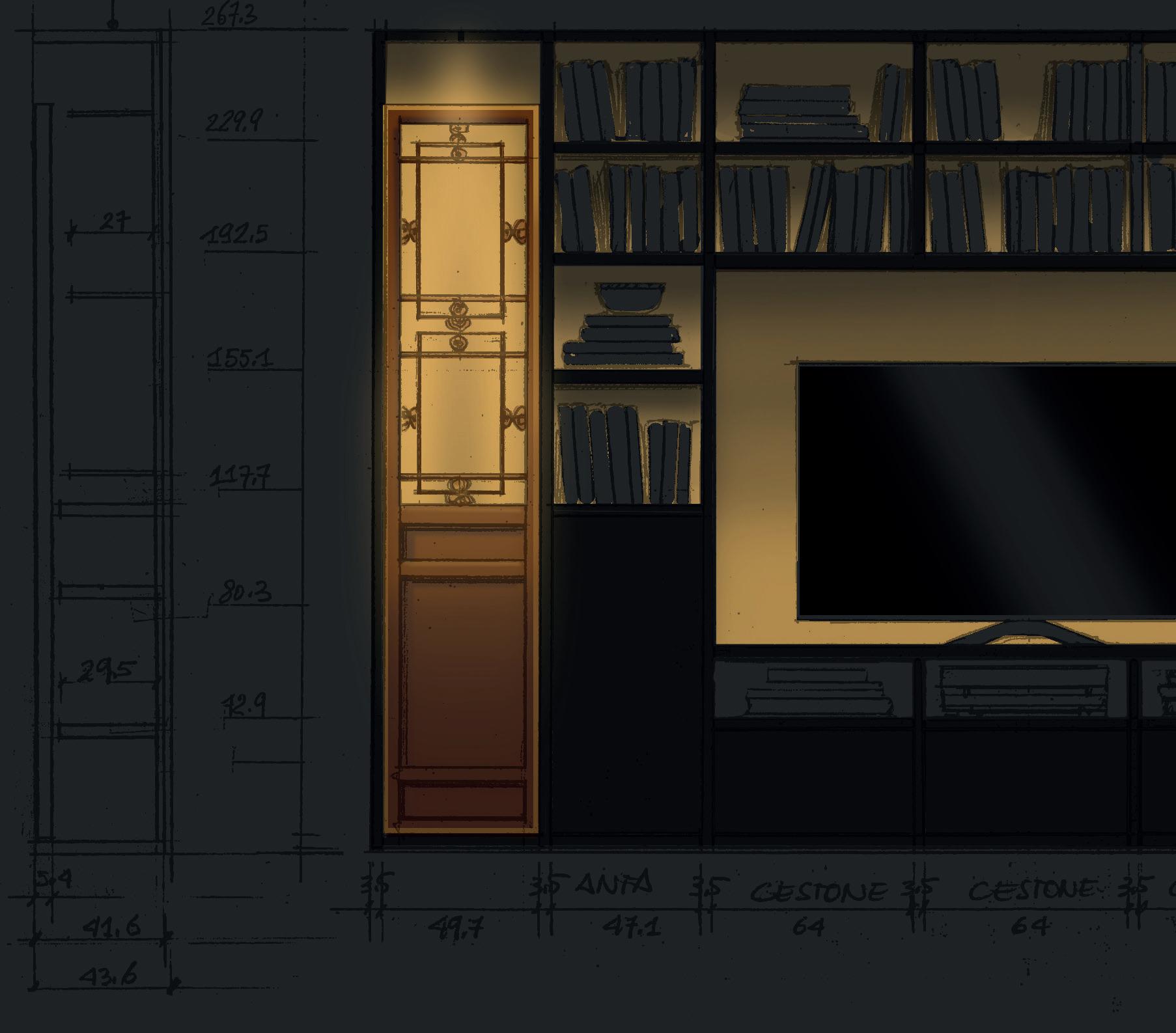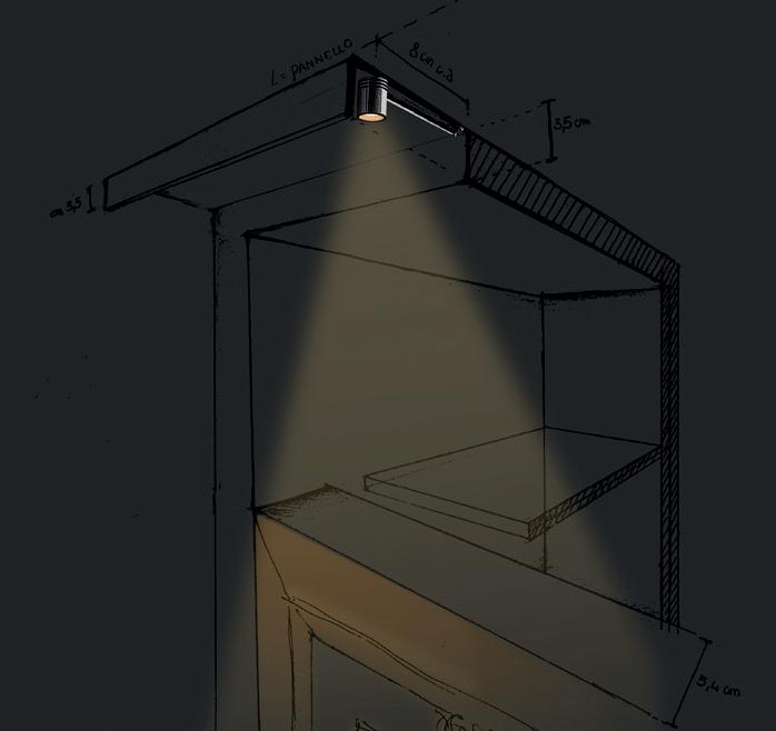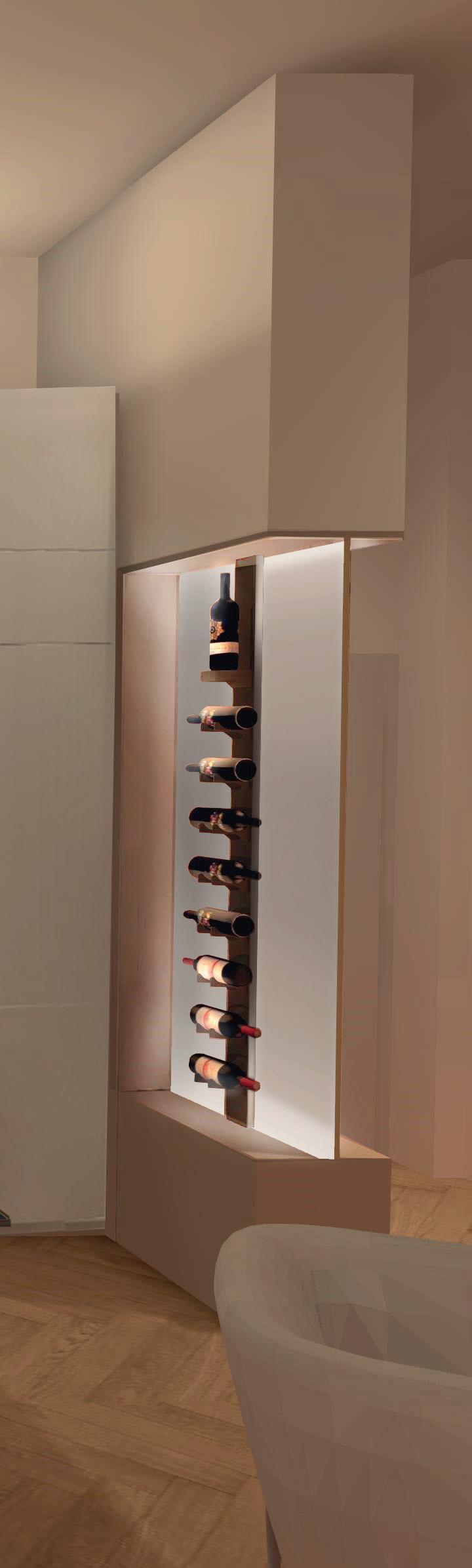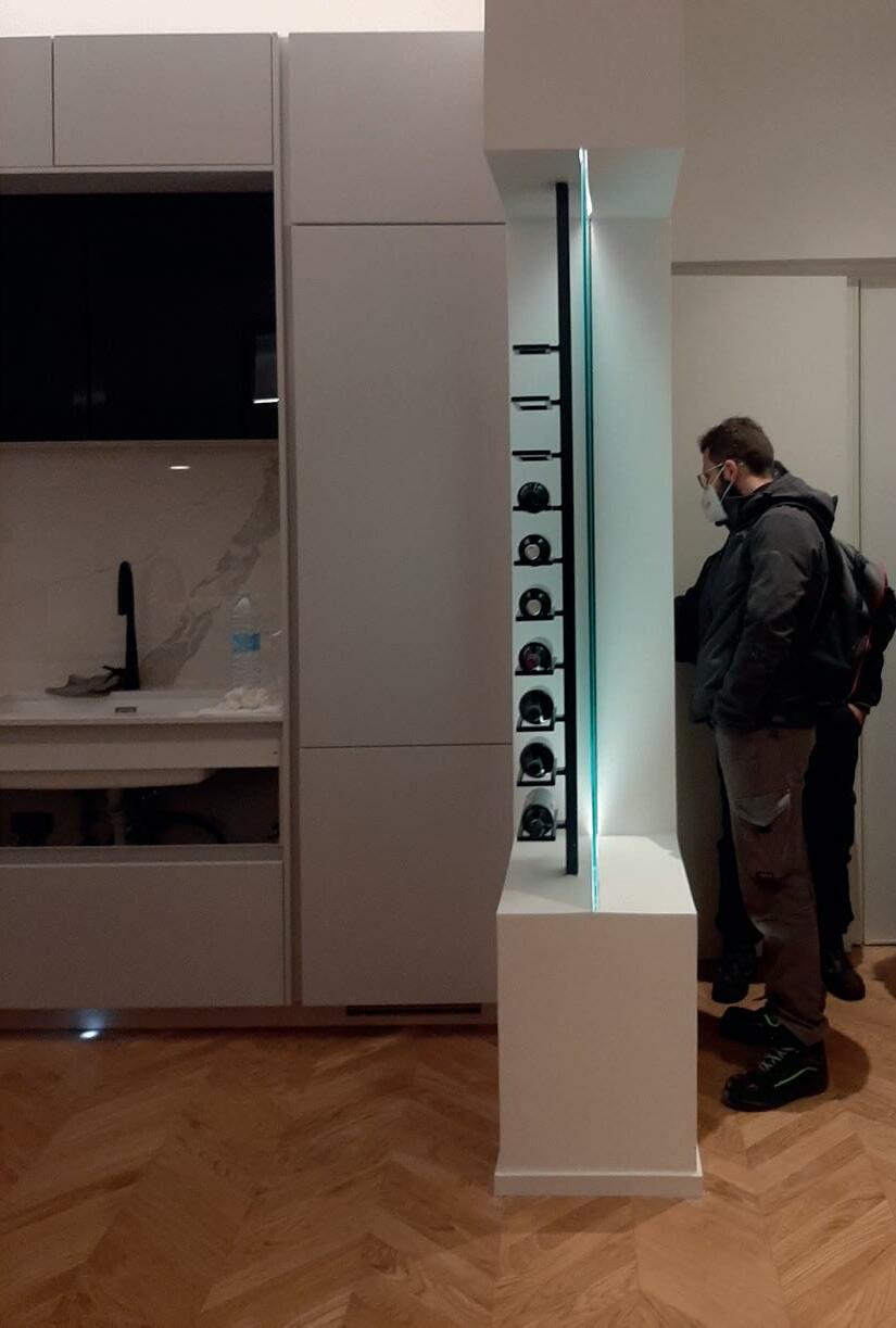 sistema di illuminazione integrata in vetro per illuminazione bottigliera in collab. con arch. Annamaria Messina