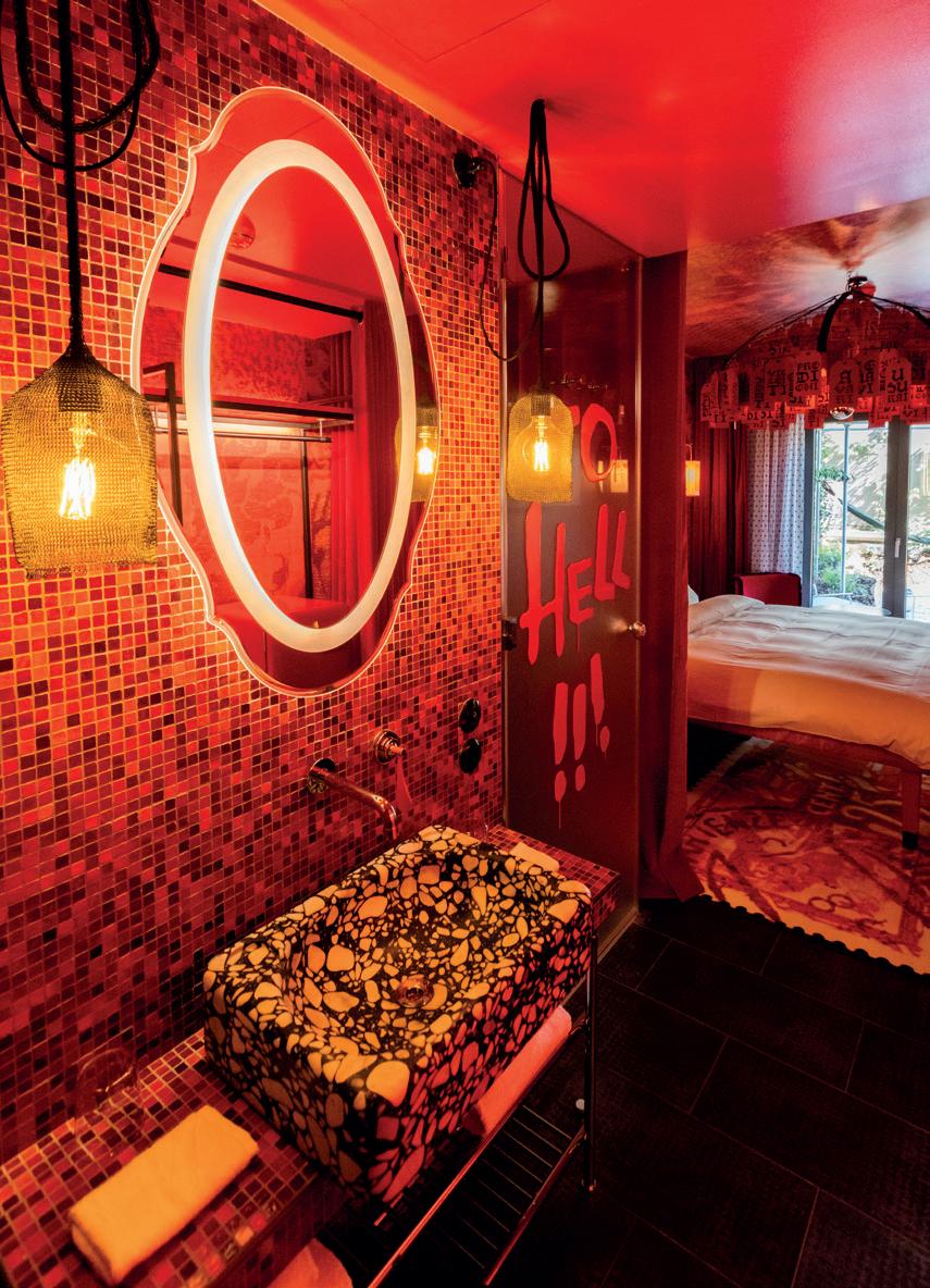 ..e al contrario ambienti lussuriosi e con luce inferno. Così anche i corridoi e le aree comuni seguono il racconto dantesco ricordando i diversi gironi e creando atmosfere particolari.