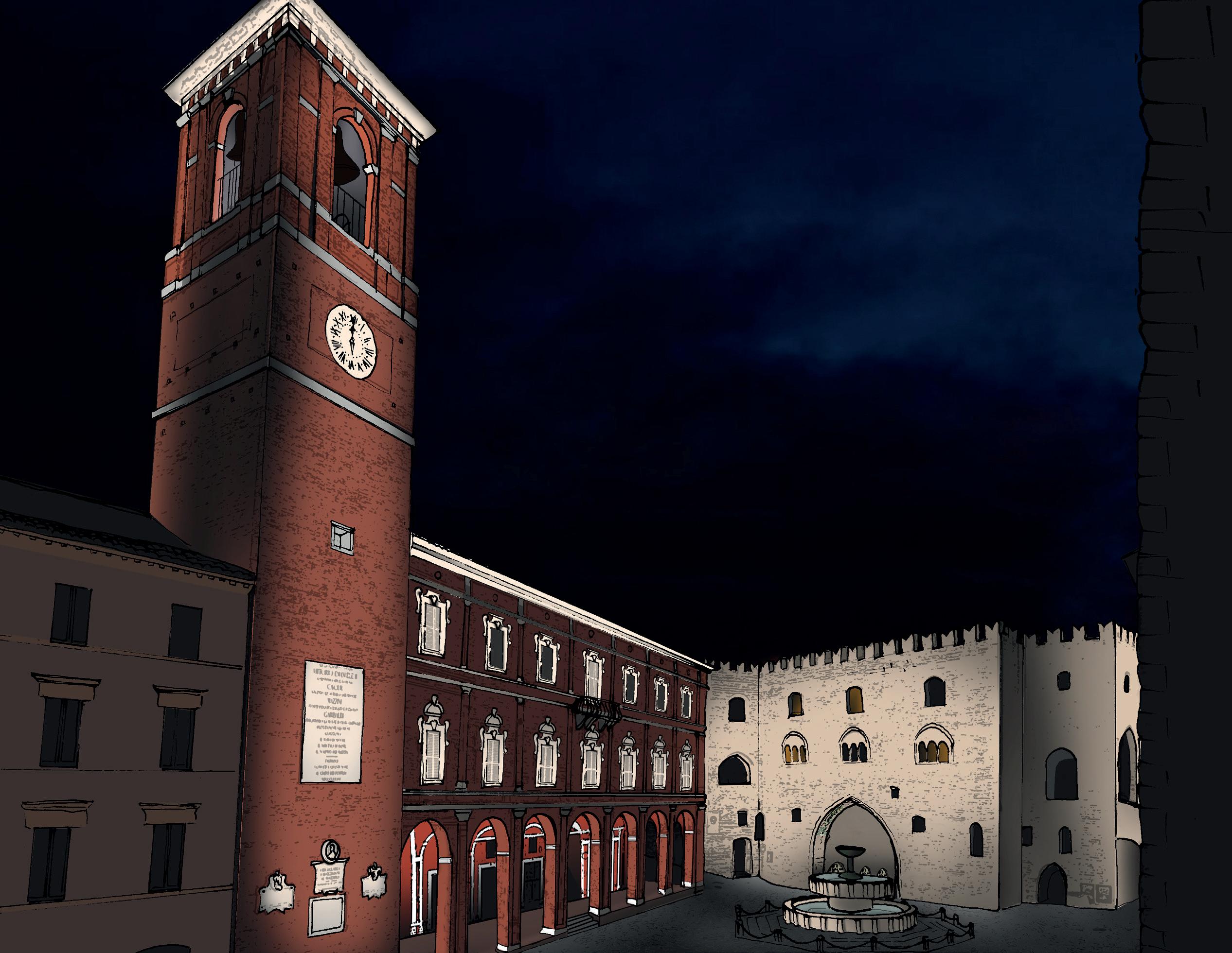 render comune ,vuole riportare al loro antico splendodo alla piazza l’importanza storico-artistica che merita. La nuova illuminazione comprenderà: Il Palazzo Vescovile con il campanile, il Pail loggiato di San Francesco e la piazza con la chiesa retrostante.