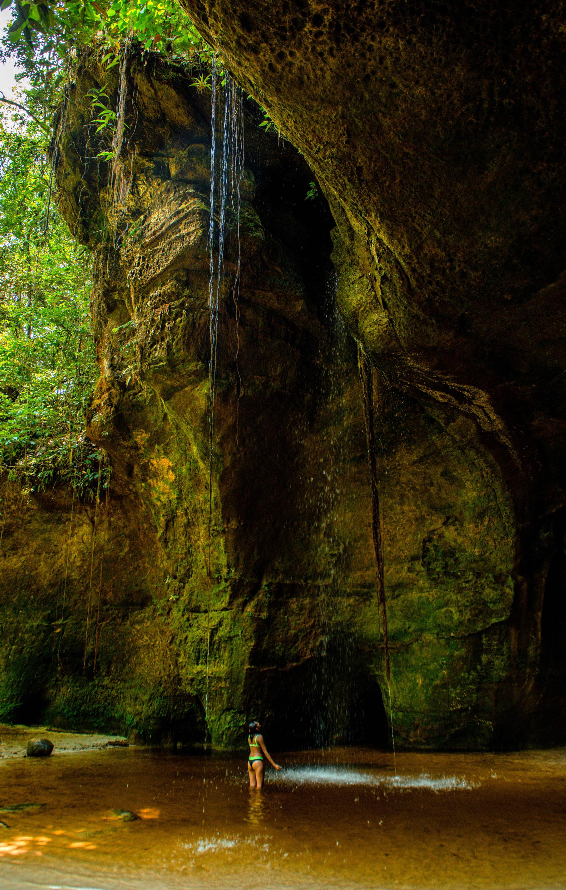 uma vegetação verde e intensa, a caverna é um oásis em meio a mata fechada e encanta com misteriosos túneis e galerias que ficam no seu interior.