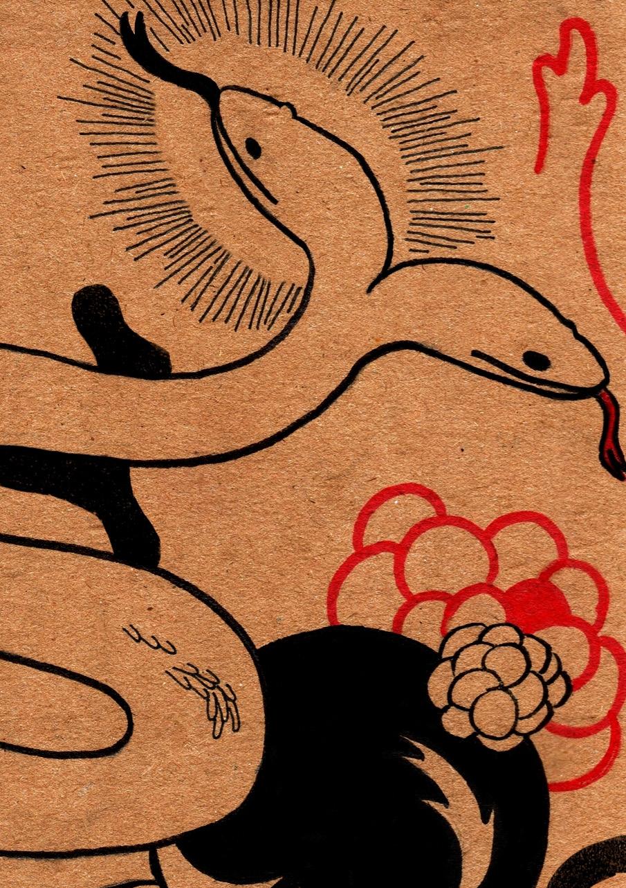 Para minha surpresa, ela me rodeou com seu corpo e me acompanhou enquanto me banhava, senti acolhimento e cuidado, como a proteção de uma mãe para com seu filho. Quando meus olhos foram de encontro aos seus, seu som sibilar ecoou como um aviso em minha mente: