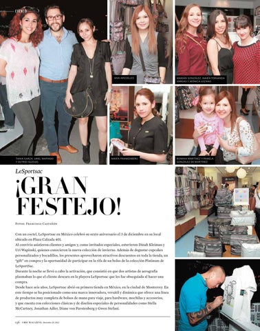 Con un coctel, LeSportsac en México celebró su sexto aniversario el 3 de diciembre en su local ubicado en Plaza Calzada 401. Al convivio asistieron clientes y amigos y, como invitados especiales, estuvieron Dinah Kleiman y Uri Wapinski, quienes conocieron la nueva colección de invierno. Además de degustar cupcakes personalizados y bocadillos, los presentes aprovecharon atractivos descuentos en toda la tienda, un “gift” en compra y la oportunidad de participar en la rifa de un bolso de la colección Platinum de LeSportSac. Durante la noche se llevó a cabo la activación, que consistió en que dos artistas de aerografía plasmaban lo que el cliente deseara en la playera LeSportsac que les fue obsequiada al hacer una compra. Desde hace seis años, LeSportsac abrió su primera tienda en México, en la ciudad de Monterrey. En este tiempo se ha posicionado como una marca innovadora, versátil y dinámica que ofrece una línea de productos muy completa de bolsos de mano para viaje, para hardware, mochilas y accesorios, y que cuenta con colecciones clásicas y de diseños especiales de personalidades como Stella McCartney, Jonathan Adler, Diane von Furstenberg y Gwen Stefani.