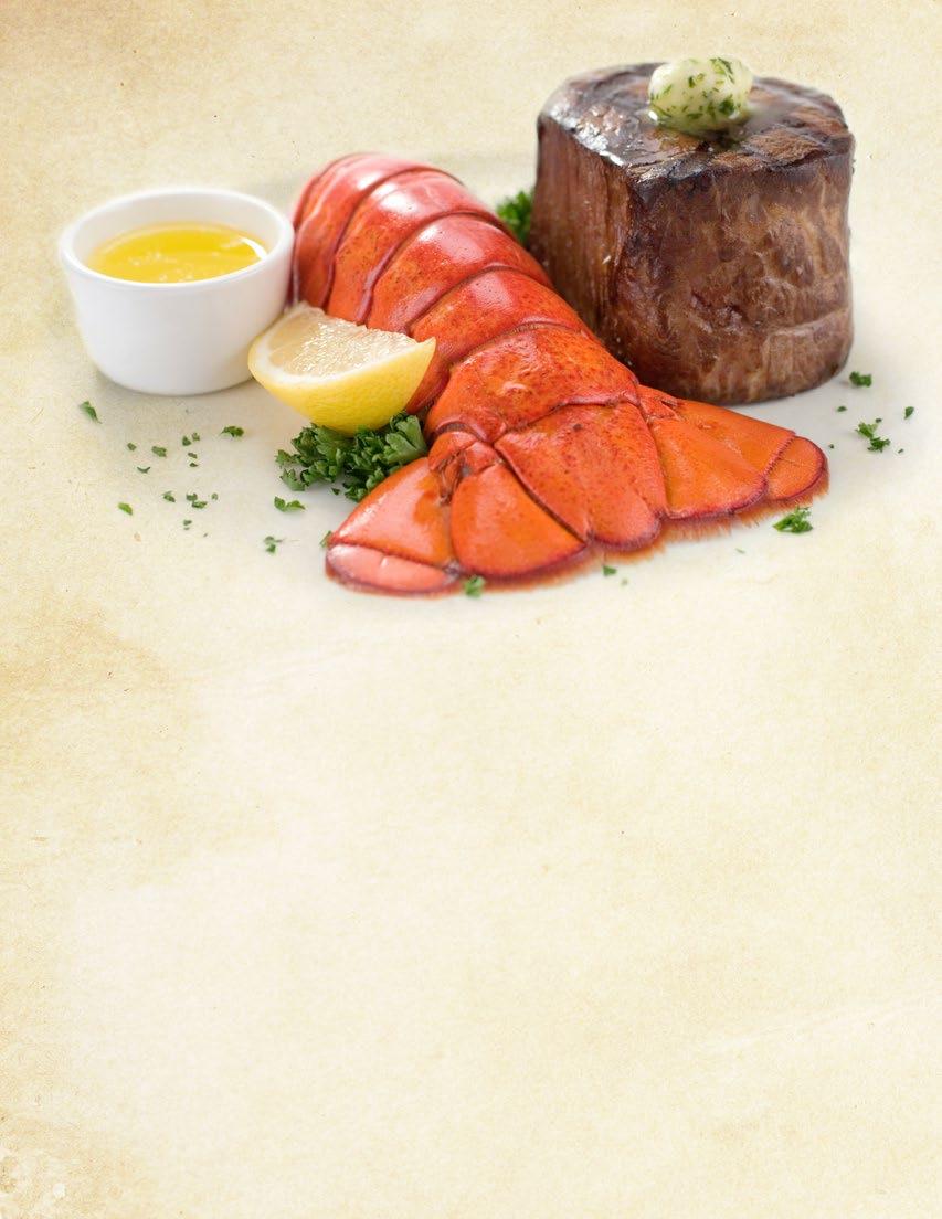 SURF & TURF . . . . . . . . . . . 14 Preferred by chefs, our Cold Water Lobster Tails are a perfect complement to any of our Perfectly Aged Steaks. MAINE LOBSTER HOUSE . . . . . . . . . . . . . . . . . . . 12 GOURMET STEAK BURGERS . . . . . . . . . . . . . . . 16 ADD-ONS 17 STEAK GIFT CLUBS . . . . . . . . . . . . . . . . . . . . . . . . 18 DESSERTS . . . . . . . . . . . . . . . . . . . . . . . . . . . . . . . . . 19 2 SELECT YOUR STEAK