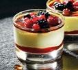 Crème Brûlée and Berries - A layer of raspberry sauce topped with a creamy custard and decorated with mixed berries coated in caramel.