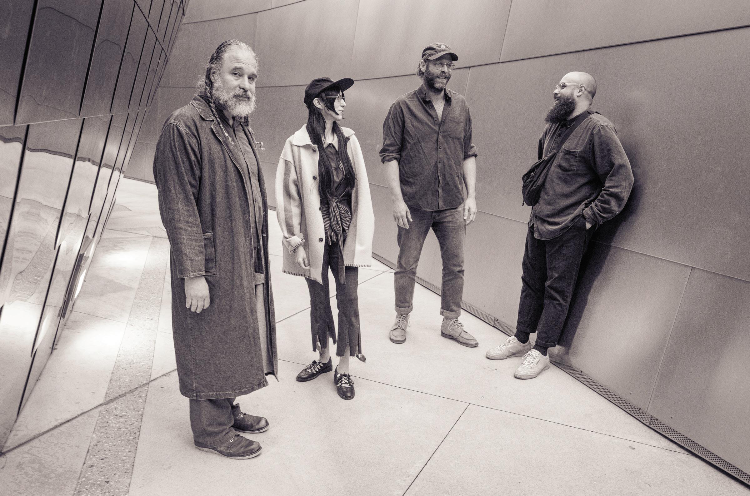 THE FIRST THING THAT WILL catch your eye at a Natural Information Society concert most likely won’t be the seated musicians but rather the woven banners that hang behind them at every show. These works of paint and cloth, made by NIS harmonium player Lisa Alvarado, combine vividly colorful psychedelic whorls and rigid geometrical patterns in ways that vibrate sympathetically with the group’s music. Bandleader, composer, guimbri player, and bassist Joshua Abrams synthesizes trance, dance, and minimalist traditions to create long, hypnotic pieces that explore the tension between fixed and changing elements. Abrams and Alvarado, who are married, cofounded Natural Information Society in 2010, but the ensemble’s boundaries are porous, with players coming, going, and sometimes returning. Several of NIS’s albums present the group in combination with outside musicians,