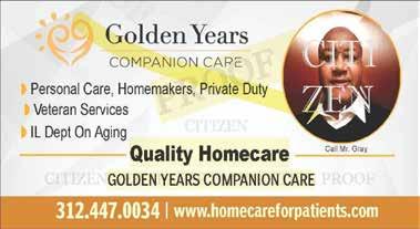 Planning for Wells Fargo. Investment and Insurance Products are: • Not Insured by the FDIC or Any Federal Government Agency • Not a Deposit or Other Obligation of, or Guaranteed by, the Bank or Any Bank Affiliate • Subject to Investment Risks, Including Possible Loss of the Principal Amount Invested ©2024 Wells Fargo Wealth & Investment Management. All rights reserved. LifeSync® is available on the smartphone versions of the Wells Fargo Mobile® app. Additional device availability may vary. Availability may be affected by your mobile carrier’s coverage area. Your mobile carrier’s message and data rates may apply. PHOTO SOURCE: (c) marchmeena29 / iStock via Getty Images Plus w Personal Care, Homemaker, Private Duty w Veteran Services w IL Dept on Aging Quality Homecare GOLDEN YEARS COMPANION CARE 312.447.0034 www.homecareforpatients.com Call Mr. Gray