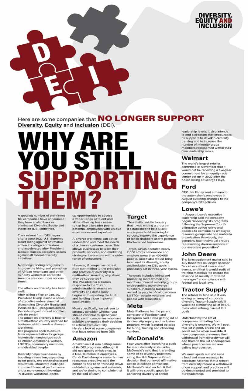 Washington, DC: The National Newspaper Publishers Association (NNPA), representing the Black Press of America, has announced the planning and implementation of a national public education and selective buying campaign across the nation in direct response to those corporate entities that have dismantled their respective Diversity, Equity and Inclusion (DEI) commitments, programs and staffing.