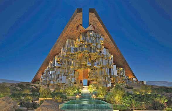 Located along the enchanting Gulf of Aqaba coastline, Gidori effortlessly combines world-class golf and active leisure, encapsulated in an ultra-modern community for guests and residents. The progressive architectural centerpiece is a beach-front complex with a spectacular cantilevered structure. Rising from the coastal landscape, it will house 190 luxury sea-view apartments alongside a range of dining experiences, signature retail stores and garden spaces.