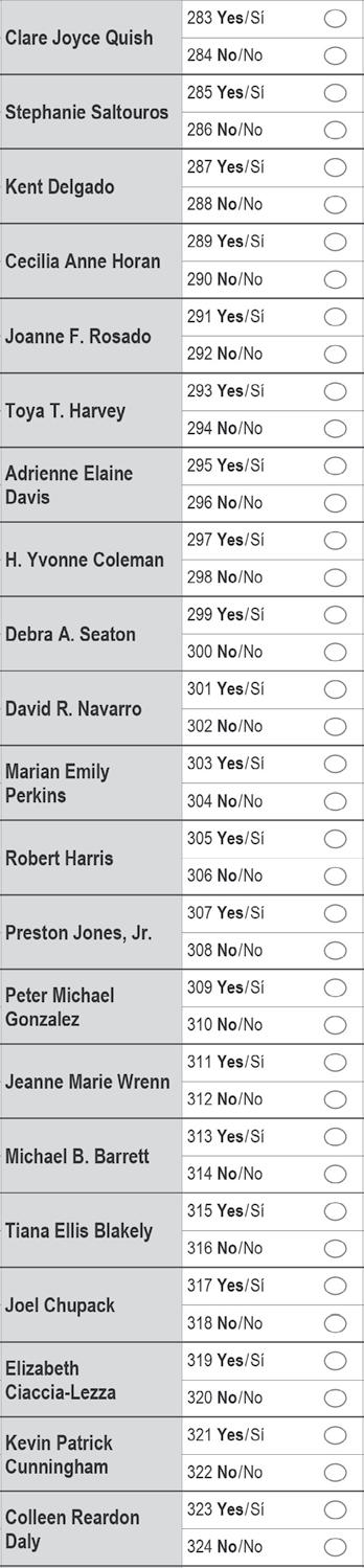 At the General Election the voters will vote on the following contests and referenda questions. Referenda/Questions of Public Policy will be voted upon in those precincts of Cook County under the jurisdiction of the Cook County Clerk in which a Unit of Local Government has requested the County Clerk’s Office to place said referenda/questions of public policy on the ballot.