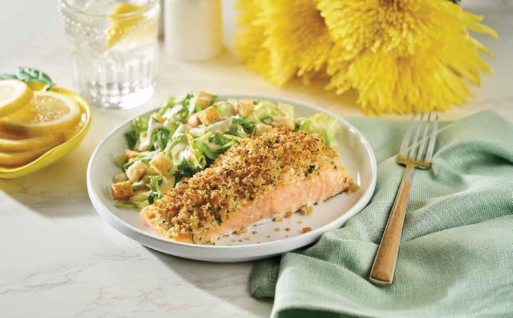 As part of the journey, it’s important to rethink nutrition and your recipe repertoire to include better-for-you meals. For example, you can satisfy seafood cravings while getting your protein fix with Italian Crusted Salmon with Creamy Truffle Caesar Salad. This one-pan solution is paired with a Fresh Express Twisted Creamy Truffle Caesar Chopped Salad Kit, inspired by high-end dining experiences with flavors that transport you to the finest restaurants around the world.