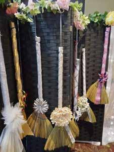 While at the church, she was asked to do a broom for a wedding. She used her creative imagination and her love of crafting to make the broom. Since 1996, she estimates she has made thousands of brooms. The brooms are available as decorative pieces in someone’s home as a house blessing.