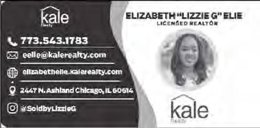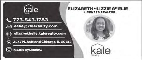 CD#123122 ATTENTION FREE GAS CARD WITH A AUTO & HOME INSURNACE QUOTE! CALL ALLSTATE AGENT HENRY BENJAMIN (773) 420-1669 BETWEEN 9-5 PM Monday-Friday We need information not hand-outs! CREDIT REPAIR SERVICES SERVICE CHATHAM & SOUTH END ONLY CLASSIFIED ELIZABETH “LIZZIE G” ELIE LICENSED REALTOR 773.543.1783 eelie@kalerealty.com elizabethelie.kalerealty.com 2447 N. Ashland Chicago, IL 60614 @SoldbyLizzieG