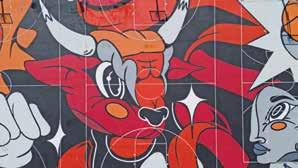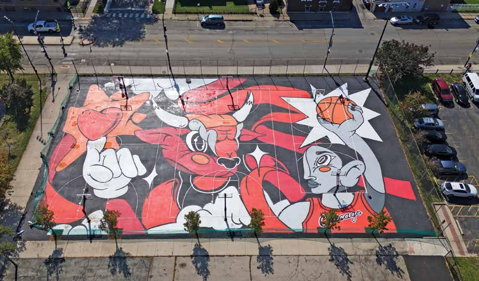 The mural on the basketball court depicts Chicago Bulls’ mascot Benny the Bull and a young girl basketball player. PHOTO PROVIDED BY THE CHICAGO BULLS.