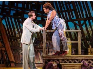 Quinn VanAntwerp as Gordy and Miki Abraham as Lulu in The North American Tour of SHUCKED. (PHOTO BY MATTHEW MURPHY AND EVAN ZIMMERMAN).