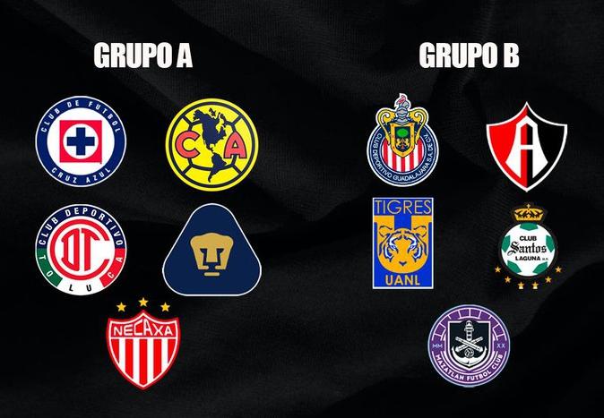 Grupo A: América, Cruz Azul, Necaxa, Pumas y Toluca