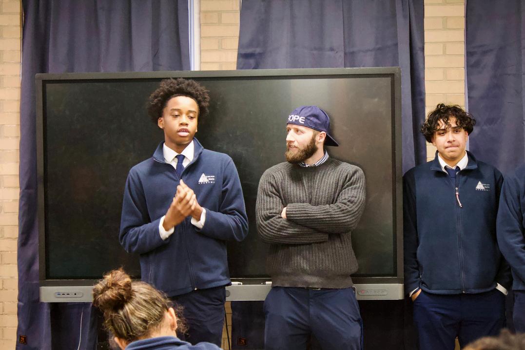 Before break, our students wrote handwritten notes to someone who had impacted their life Alexceon wrote to his mentor and teacher, Mr. Jose Nietes –Hope alum turned Accounting and Entrepreneurship instructor – thanking him for pushing him toward patience, excellence, and belief in his own potential After four CEOs joined us for a leadership panel, Alexceon stood and shared that his flourishing continues because Mr. Nietes believes in him.