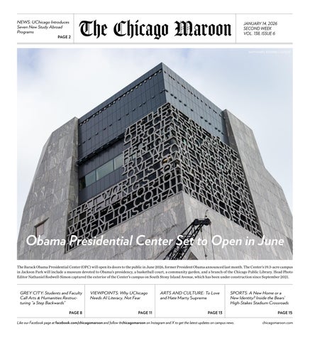 Like our Facebook page at facebook.com/chicagomaroon and follow @chicagomaroon on Instagram and Twitter to get the latest updates on campus news. chicagomaroon.com MAY 4, 2023 SEVENTH WEEK VOL. 135, ISSUE 14 GREY CITY: The Wild Goose Chase to Chase Out the Canada Geese PAGE 7 NEWS: Phoenix Sustainability Initiative Opens Semi-Permanent Thrift Store on Campus PAGE 6 VIEWPOINTS: Open Letter to the University’s Department of Safety and Security on Traffic Safety PAGE 10 SPORTS: The Chicago Bulls Tried to Fast-Track Their Rebuild. It Failed. PAGE 14