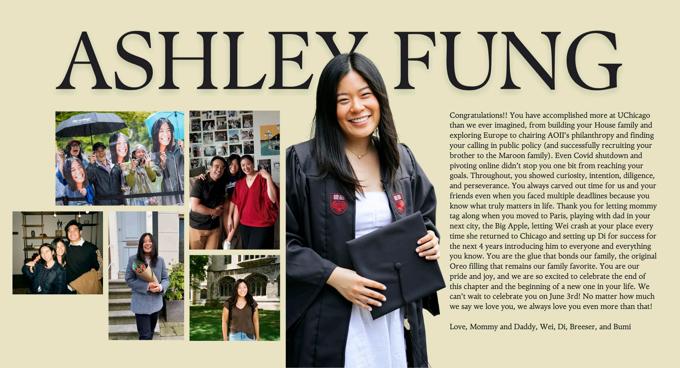 and thank you for excelling at each one of these tasks. And to everyone else beyond The Maroon with whom we crossed paths—peer mentors, lab partners, hometown friends, new neighbors, roommates, baristas, TAs, acquaintances we got to know at parties, strangers in the library we never got to know—thank you for animating our UChicago experiences in the way that you each did. We know you’ll do the same wherever you go next.