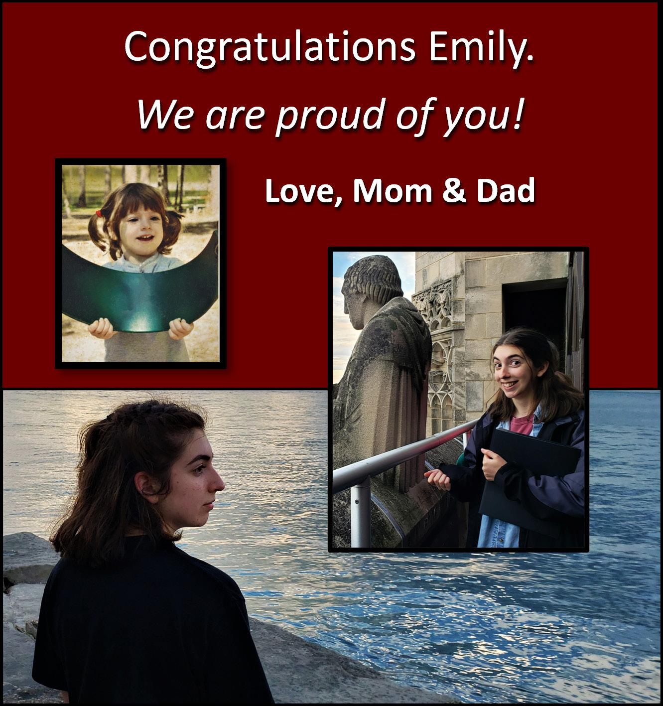 We are so proud of you. You bring us so much joy and we can’t wait for the next chapter of your life. We love you, Mom, Dad and Lee