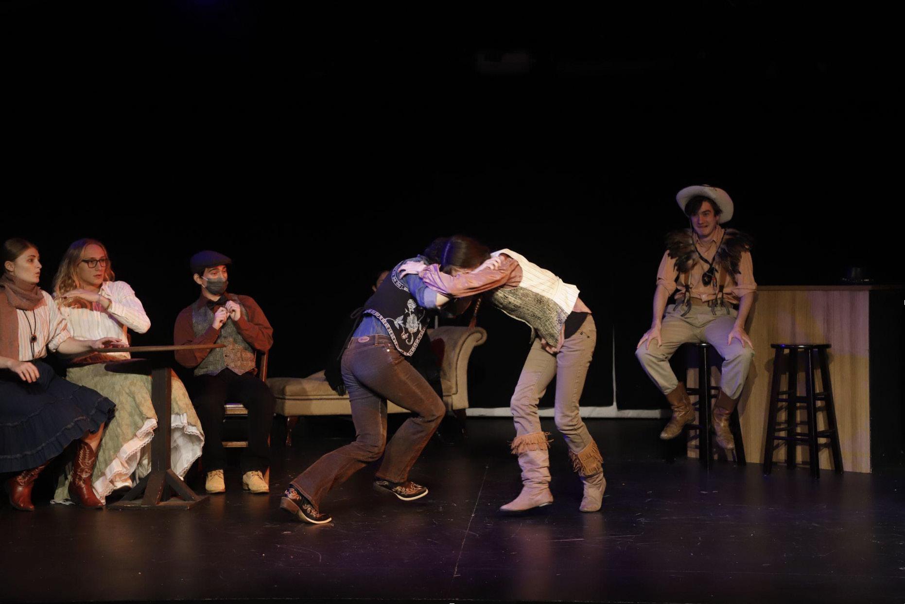 At its core, the play follows Rosalind (Department of Romance Languages and Literatures Assistant Lexie Vogel) as she is banished from the court and escapes with her cousin Celia (third-year Robert Stimpson) into a desertlike wilderness, where Rosalind adopts the disguise of “Ganymede.” Orlando (first-year Maela Mazzone), mistreated by her brother Oliver (first-year Henry Roth), also flees into the same strange frontier. Once there, mistaken identities, mismatched affections, and disguised flirtations unfold in a landscape populated by shepherds, fools, and the occasional wild animal.
