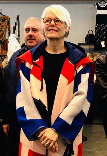 Sally Schwartz, Randolph Street Market founder, with Mark Olley wearing vintage at her 2019 Ret rospect fashion show. Vintage lover Andrea Reynders wearing her own Jean-Charles de Castlebajac coat. Tonya Primus wearing Elke couture kimono from the 1970s. Cameron Silver, vintage fashion guru. Photo by David Christopher LeePrivate Offices