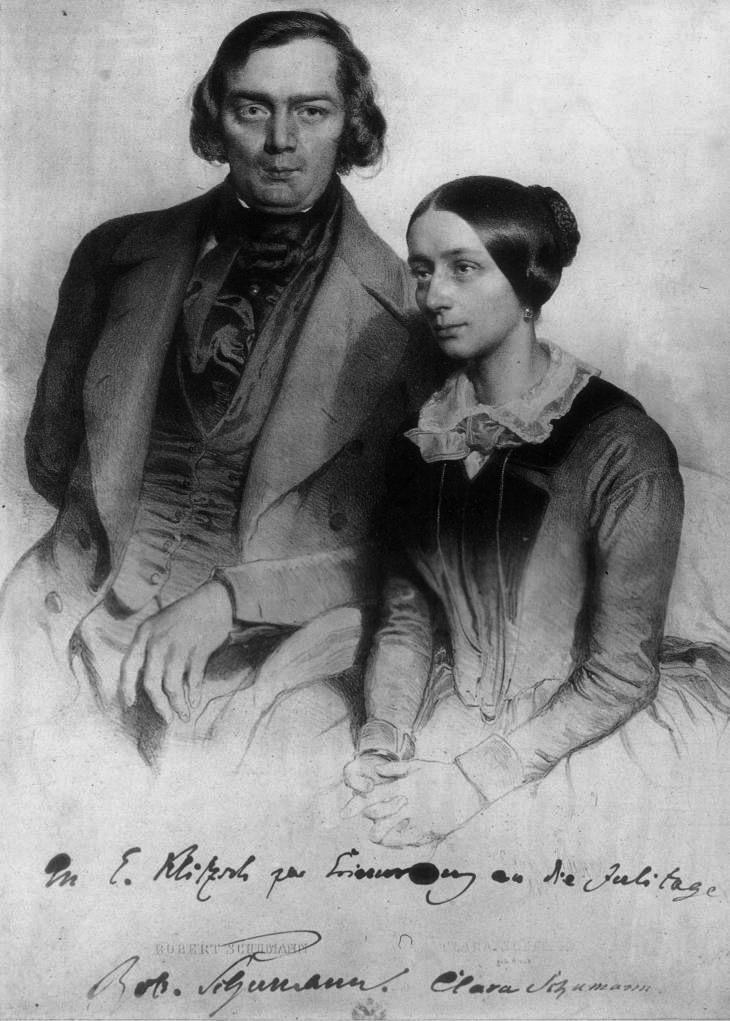 from top: Lithograph of Robert and Clara Schumann by Eduard Kaiser (1820–1895), Vienna, 1847; inscribed to their Zwickau friend, composer and writer Emanuel Klitzsch (1812–1889)