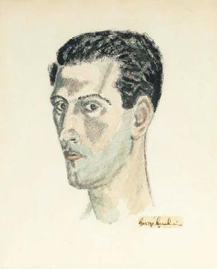 opposite page: George Gershwin, self-portrait, charcoal and watercolor on paper, 1930s
