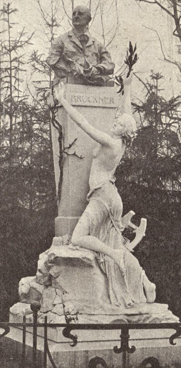 previous page: Anton Bruckner, in formal attire, with the Knight’s Cross of the Order of Franz Joseph and its accompanying diploma awarded by Emperor Franz Joseph I (1830–1916) in 1886. Photograph by Otto Schmidt (1849–1920), Vienna, Austria | this page: Monument to Bruckner in Vienna’s Stadtpark, unveiled in 1899 and later damaged and replaced with a simpler version. Bronze bust by Viktor Tilgner (1891–1899) and base by Fritz Zerritsch (1865–1938), including the likeness of Elisabeth Praherstorfer, a young woman admired by the composer