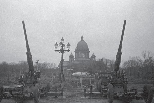 Antiaircraft gunners on guard in Leningrad (now Saint Petersburg), Russia. Photo by David Trahtenberg (1906–1975), 1941. Russian International News Agency
